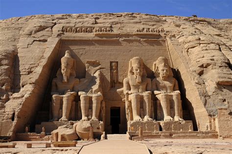 Le 22 mars 1813, l'historien suisse Jean-Louis Burckhardt tombe par hasard devant la façade ensablée du temple, alors qu'il était venu visiter un autre temple situé à proximité. A ce moment-là, seules les quatre têtes des statues à l'effigie de Ramses II étaient visibles. Quatre ans plus tard, le 1er août 1817, c'est finalement l'aventurier italien Giovanni Battista Belzoni et son équipe qui retirèrent le sable restant et parvinrent à ouvrir le temple. Les archéologues pensent que son édification aurait duré 20 ans et aurait été consacré au pharaon Ramses II. Un autre temple situé juste à côté est dédié à la femme du pharaon, Néfertari.